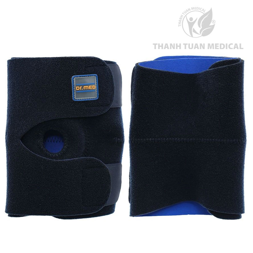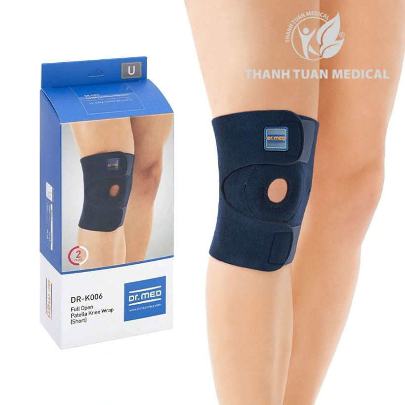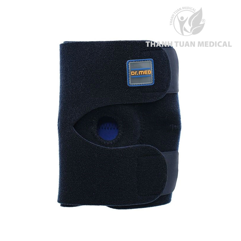 Bước 1: Vòng Bao đeo đầu gối Dr. Med DR-K006 quanh đầu gối, phần miếng tròn nằm ở giữa đầu gối.