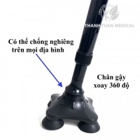 - Gậy có 4 chân trụ bằng nhựa đúc giúp việc đi lại của người già chắc chắn, dễ rang.