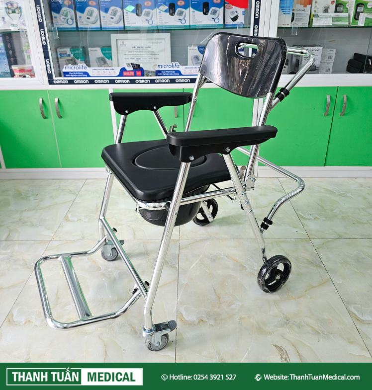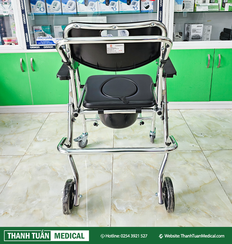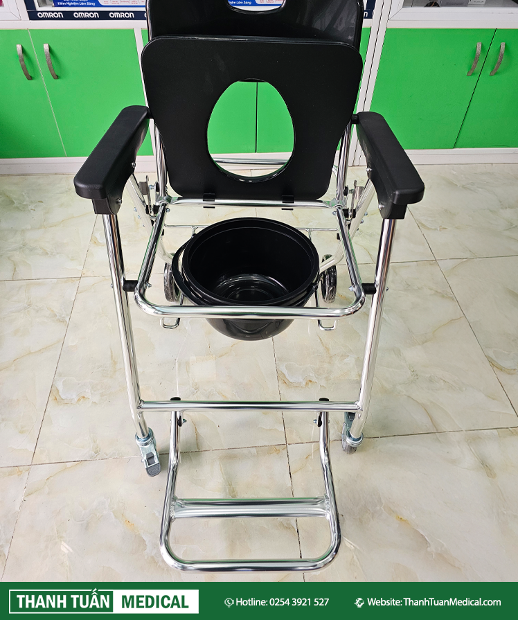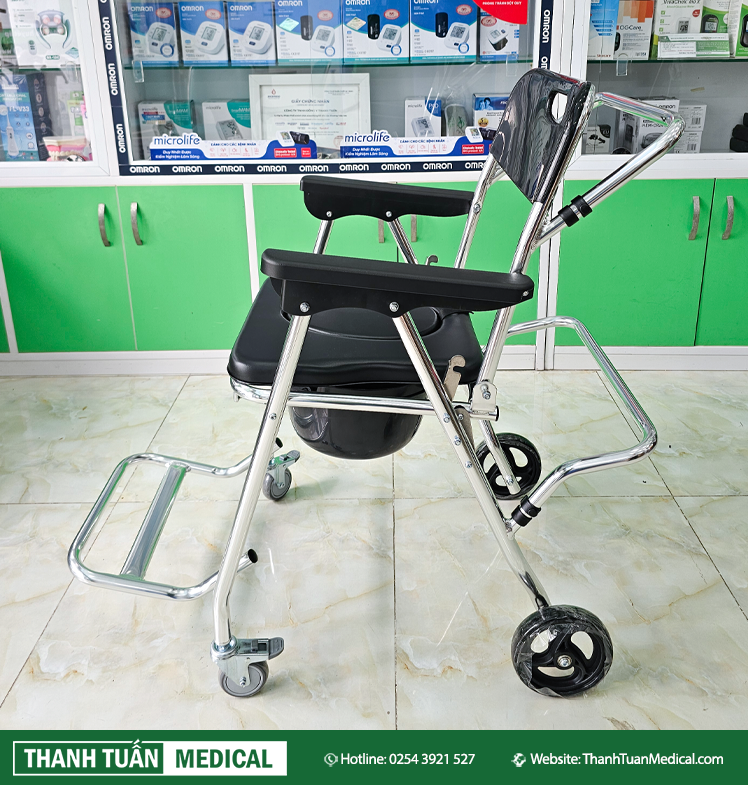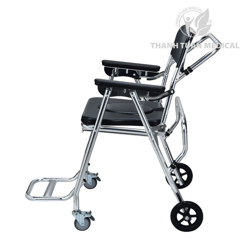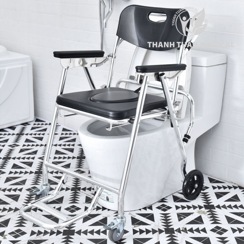 Ghế bô đa năng có thể đẩy người từ giường vào nhà vệ sinh và đi vệ sinh trực tiếp xuống bồn cầu, dùng nước xả rửa mà không bị han gỉ, có thể dùng làm xe lăn khi cần di chuyển, cũng có thể dùng làm ghế ngồi sinh hoạt hàng ngày trong nhà.