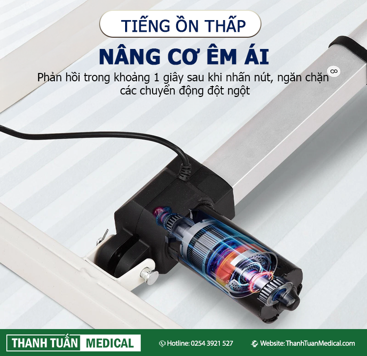 - Được trang bị động cơ êm ái tích hợp và điều khiển từ xa, điều chỉnh góc dễ dàng từ 6-70 độ, mang lại sự thoải mái dễ chịu, trên điều khiển bằng điện có hình ảnh dễ hiểu giúp người cao tuổi có thể hiểu cách thao tác.