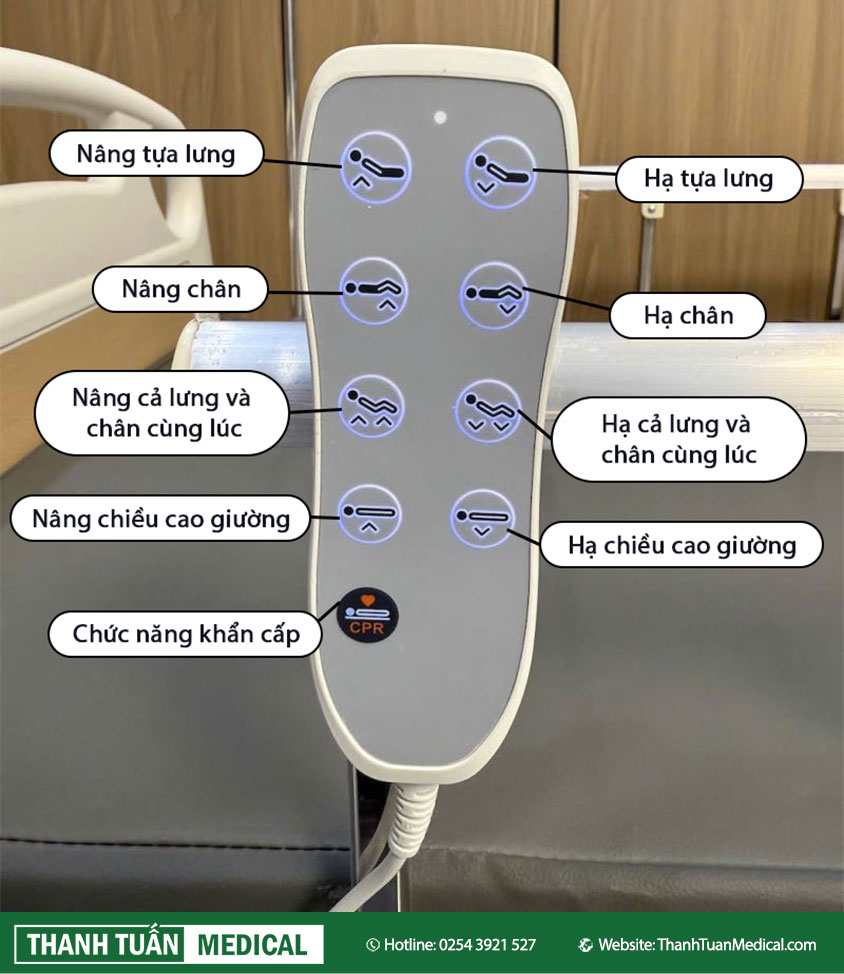 Tích hợp chức năng hạ lưng khẩn cấp (CPR Ä‘iện), cho phép đưa giưá»ng vá» tư thế bằng phẳng nhanh chóng trong tình huống cần cấp cứu.