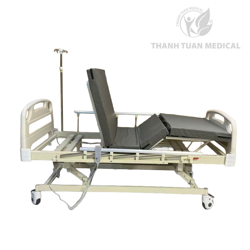 ☘ Giưá»ng y tế Ä‘iện GBM-091EF nâng đầu, nâng chân, nâng hạ chiá»u cao 42–62cm, có bàn ăn, cây truyá»n dịch, phù hợp chăm sóc ngưá»i bệnh tại nhà.
