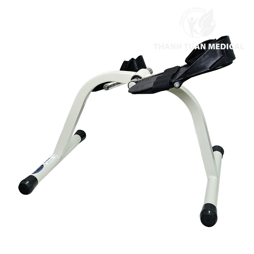 - Chất liệu: Khung sắt sơn tỉnh điện màu kem nhăn bền màu hạn chế trầy xướt, guốc để chân bằng nhựa, có quai buộc giữ bàn chân.