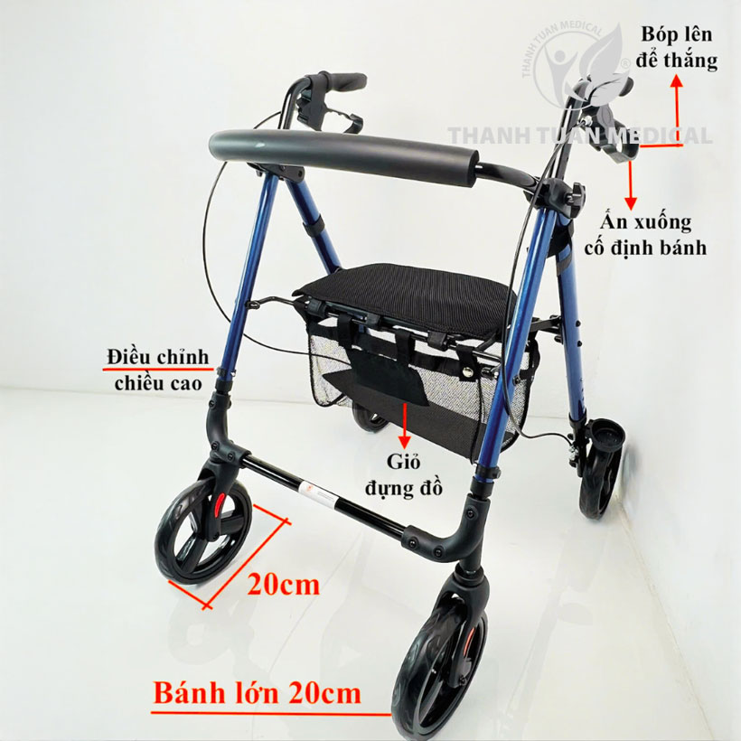Xe Đẩy Tập Đi GBM-035 NEW - Tiện dụng cho Người già, Người tai biến đi lại kém (Có tăng chỉnh chiều cao)