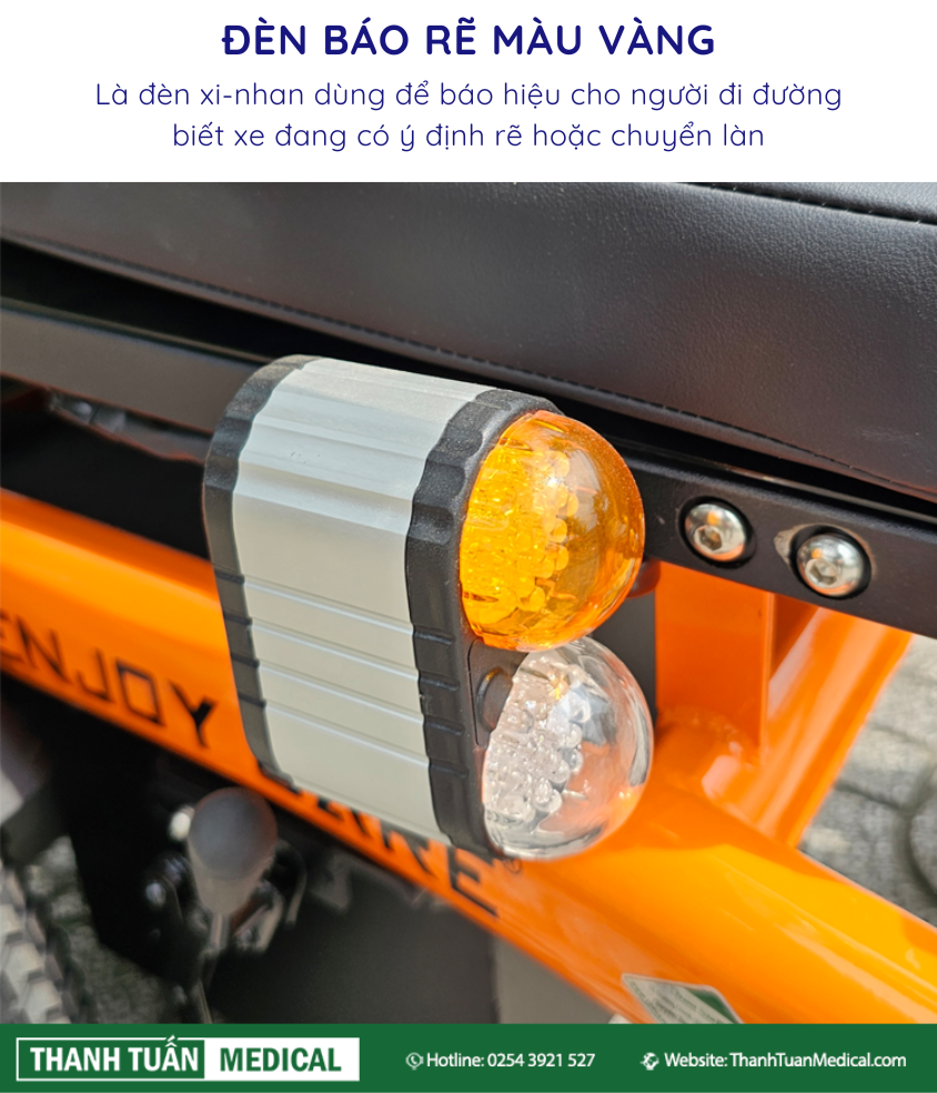 - Xe được trang bị hệ thống đèn đầy đủ như đèn báo rẽ màu vàng (đèn xi-nhan) và đèn phản quang.