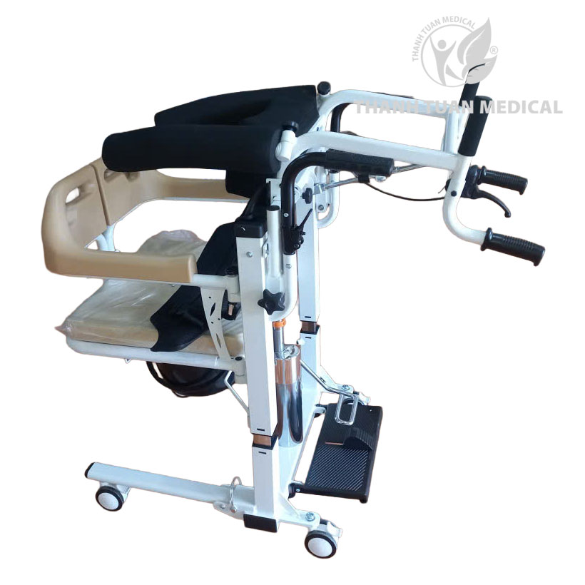 - Ghế bô có thể nâng hạ và di chuyển bệnh nhân từ giưá»ng ra ghế.