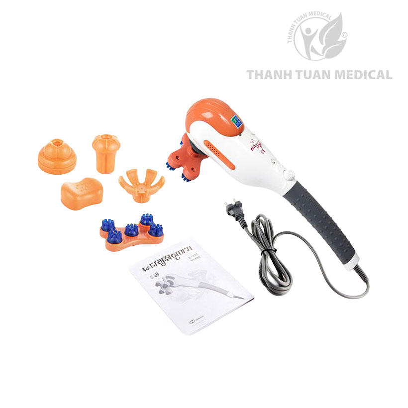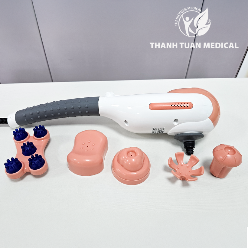 - Trang bị 5 đầu massage rời, dễ dàng lắp ráp, thiết kế riêng biệt phù hợp từng vùng trên cơ thể như vai gáy, cổ tay, chân, lưng…