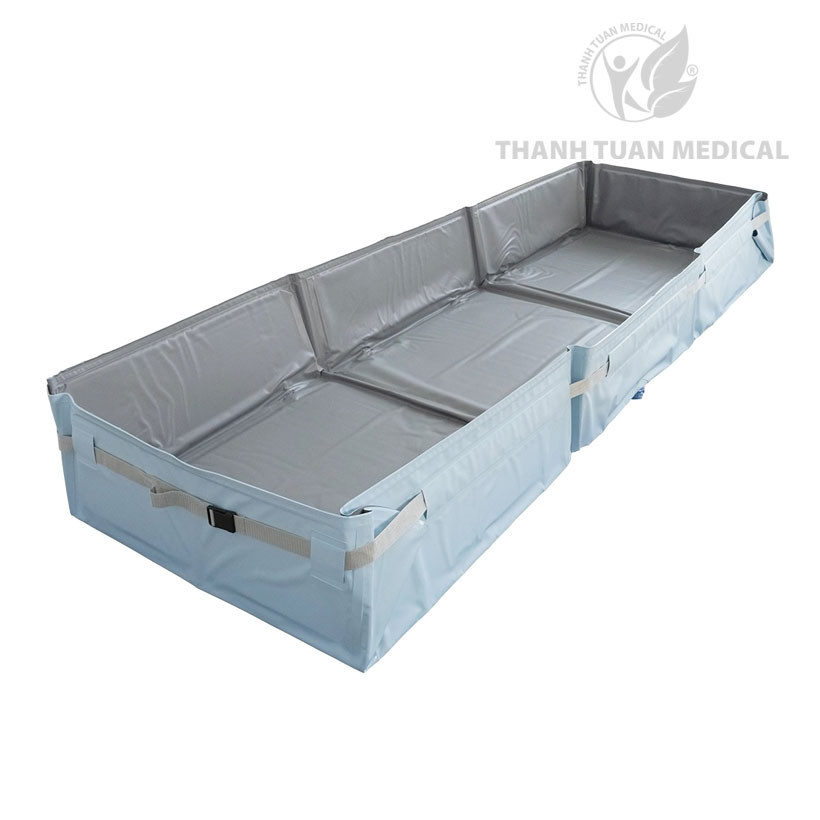 - Chỉ cần đặt lên giường và cố định bốn góc phao. Nhờ đó, việc tắm toàn thân trở nên dễ dàng và an toàn cho những người có khả năng vận động hạn chế.