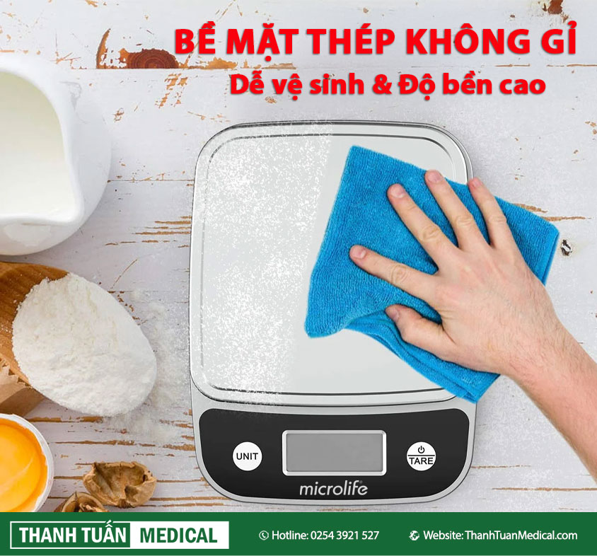 - Bá» mặt cân cân thép không gỉ và nhá»±a cao cấp siêu bá»n, chống thấm nước giúp dá»… dà ng vệ sinh.