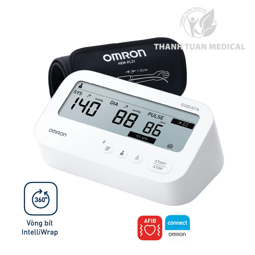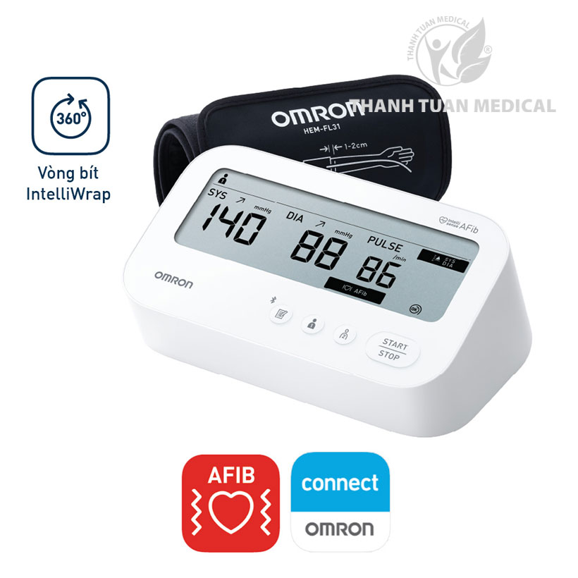 Chăm sóc sức khá»e tim mạch cá»§a bạn thông minh vá»›i HEM-7194T1-FLAP để phát hiện rung nhÄ© (AFib) chỉ vá»›i má»™t phép Ä‘o huyết áp duy nhất. Vòng bÃt IntelliWrapâ„¢ đảm bảo độ vừa vặn tùy chỉnh và kết quả Ä‘á»c chÃnh xác má»i lúc. Äồng bá»™ hóa liá»n mạch vá»›i OMRON Connect để theo dõi và chia sẻ kết quả cá»§a bạn má»™t cách dá»… dà ng. Chức năng ngưá»i dùng kép cho phép hai ngưá»i dùng lưu trữ và truyá»n dữ liệu cá»§a hỠđến Ä‘iện thoại thông minh cá»§a há» - lý tưởng để sá» dụng chung tại nhà .