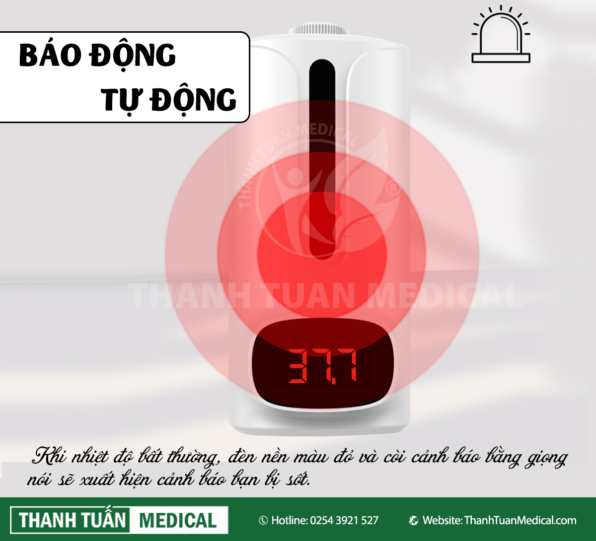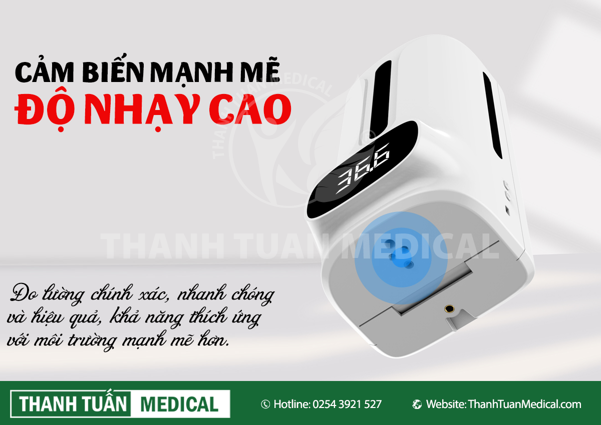 - Chức năng cảnh báo sốt, khi nhiệt độ bất thường, đèn nền màu đỏ và còi cảnh báo bằng giọng nói.