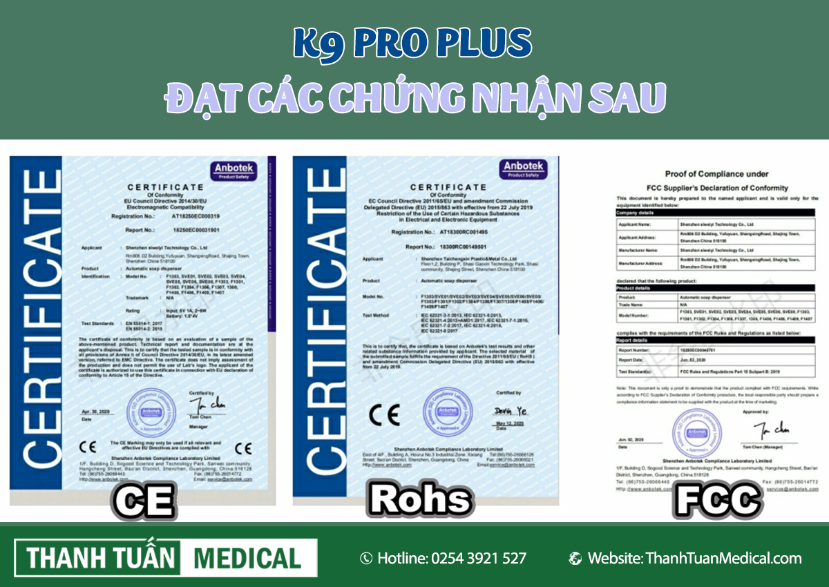 Máy đo thân nhiệt 2 trong 1 tự động K9 Pro đạt được chứng nhận của CE, FCC, RoHS