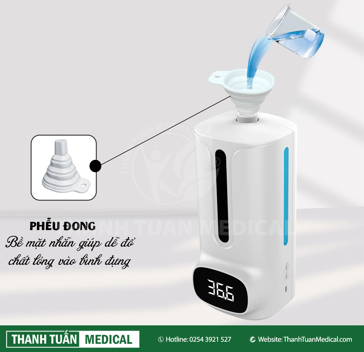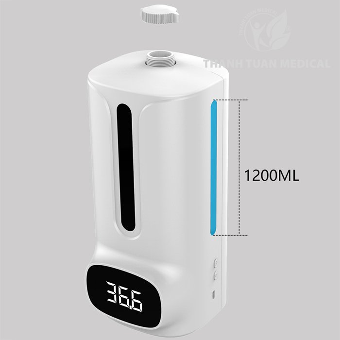 Máy đo thân nhiệt 2 trong 1 tự động K9 Pro có phễu đong dung dịch vào bình đựng tránh bị đổ ra ngoài