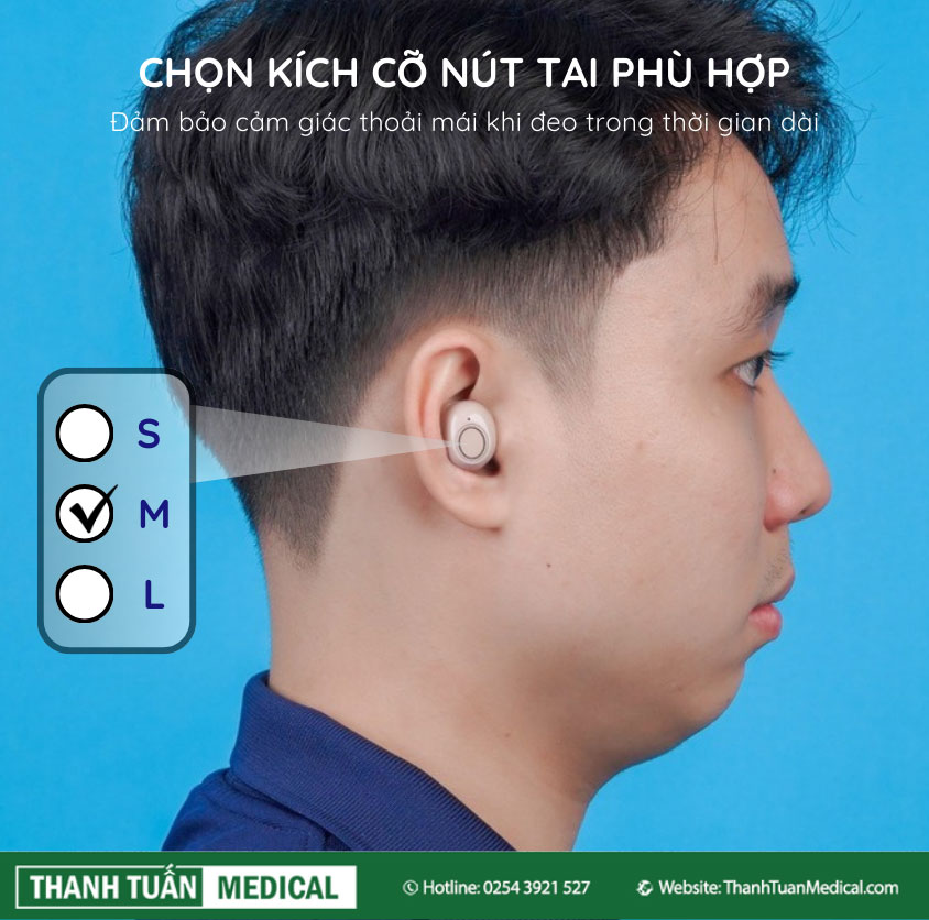 Chá»n đúng kÃch cỡ nút tai (S, M, L) phù hợp.