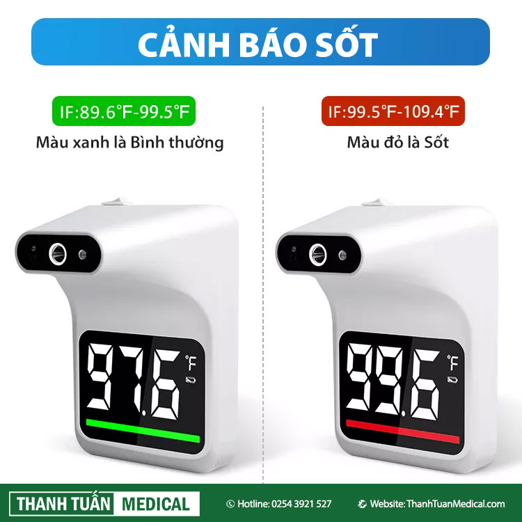 - Cảnh báo mà u đèn LED: Xanh < 37,5oC, đỠ> 37,5oC