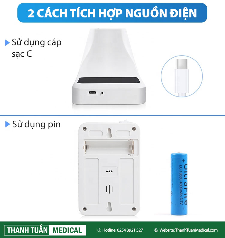 Nhiệt kế Alphamed UFR101 có 2 hình thức tÃch hợp nguồn Ä‘iện