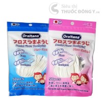 - Tăm chỉ nha khoa Oraltana là sự kết hợp giữa chỉ tơ nha khoa và tăm xỉa răng, một đầu dùng như chỉ nha khoa, một đầu dùng như tăm xỉa răng với chất liệu bằng nhựa mềm không làm hại nướu mà vẫn loại trừ các mảng bám, thức ăn thừa trong khe răng, giúp giữ răng miệng sạch và chắc khỏe.